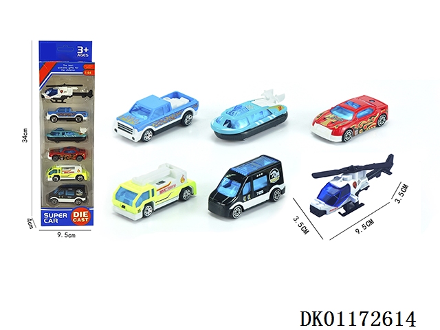 6 Strip mounted 1:64 alloy city cars and aircraft (6 mixed)