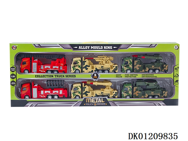 1: 32 Alloy fire protection, military green military vehicle, desert yellow military vehicle mixed model box, 6 pieces
