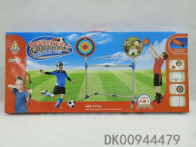Four in one football basketball bow and arrow target combination with 2 balls and air pump