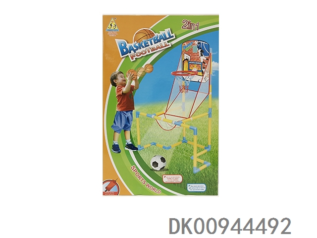 Two in one basketball stand football combination with 2 balls and air pump