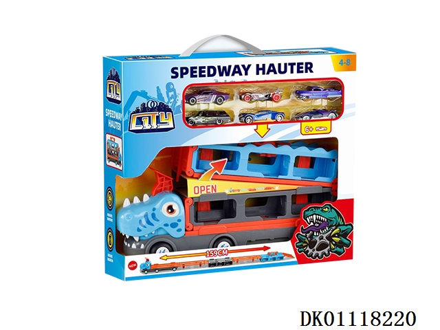 Dinosaur catapult vehicle and 6 small cars