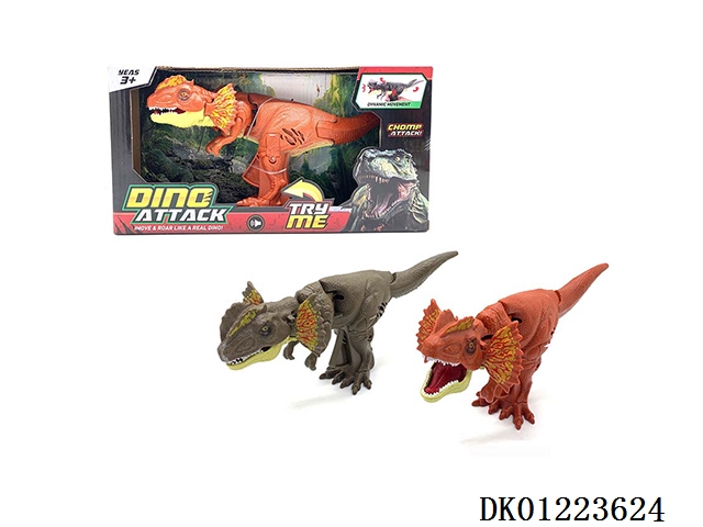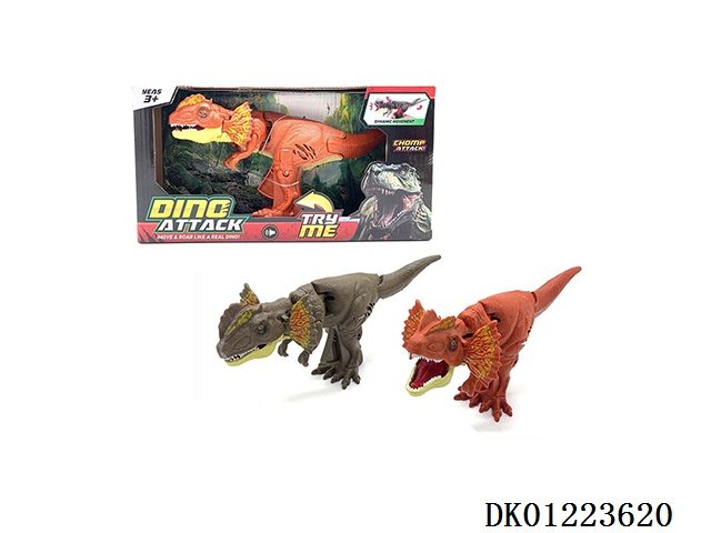 Manual head swinging dinosaur - double crowned dragon with sound (with sound effect - single package)