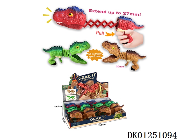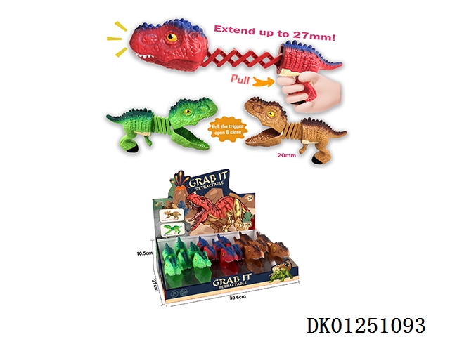 Teeth and finger biting dinosaur (tyrannosaurus rex) spring retractable clamp 12pcs/box