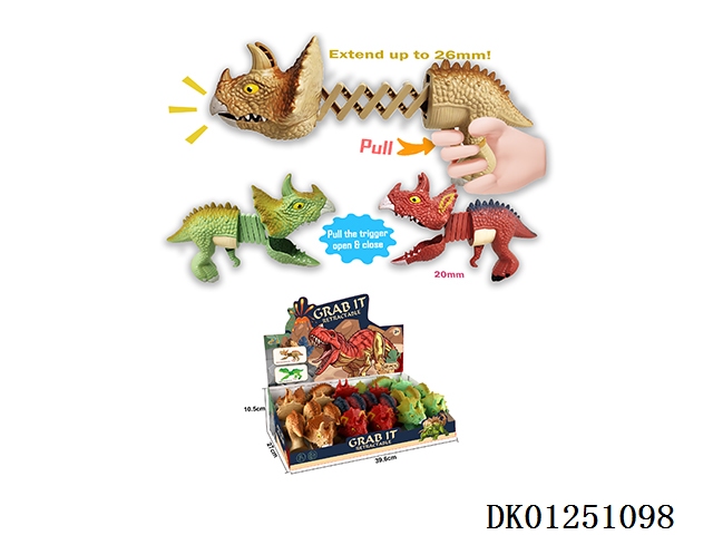 Tooth biting and finger biting dinosaur (triceratops) spring extendable clip 12pcs/box