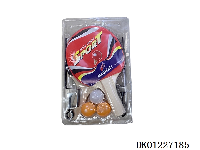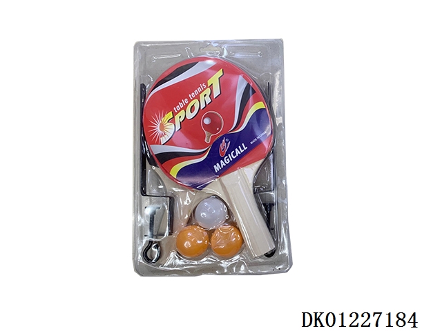 Table tennis racket with rubber and net, and 3 table tennis balls