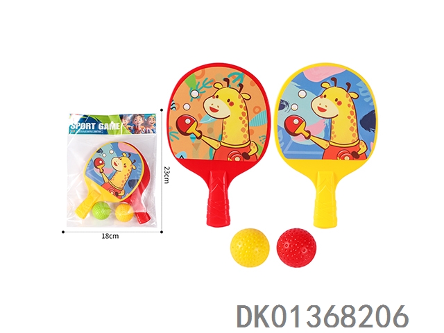 Cartoon style table tennis racket with 2 balls