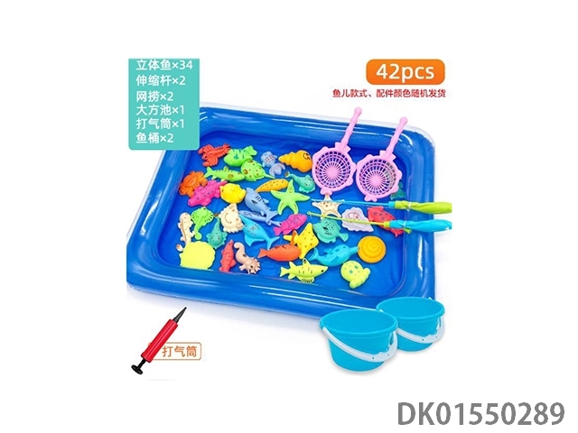 Fishing 42 piece square pool and 2 buckets
