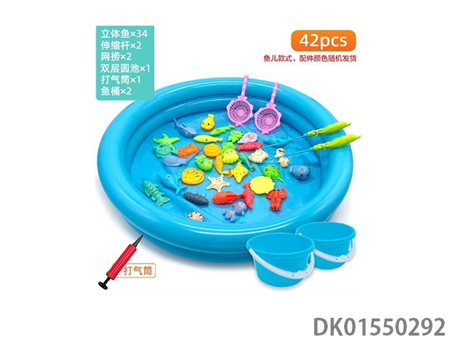Fishing 42 piece round pool and 2 buckets