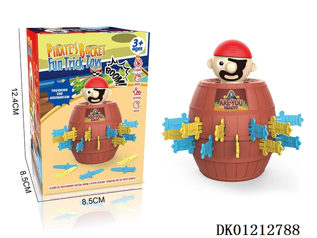 Playing house toys, pirate bucket toys, parent-child interaction, sword insertion, bouncing, toy pranks, tabletop game, medium