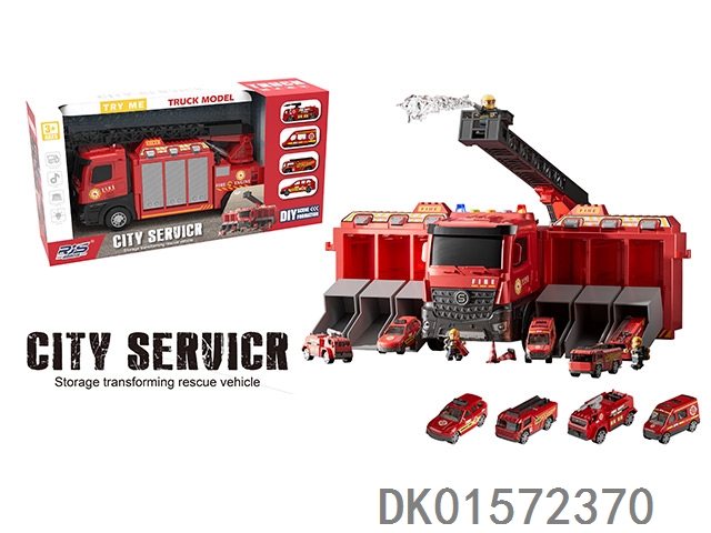Transforming storage fire truck