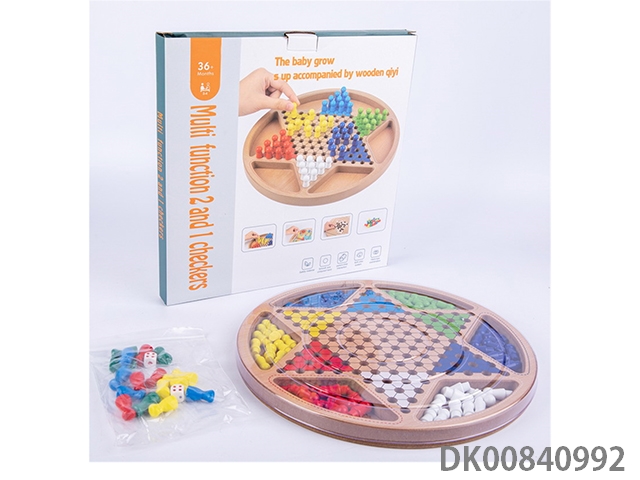 Wooden 2 in 1 checkers (checkers and 5 pieces, checkers and flying)