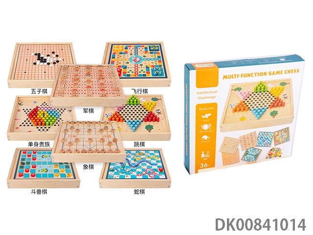 Wooden 8 in 1 chess (5 pieces, flying chess, 1 body noble, checkers, beast fighting chess, snake chess, military flag, chess)