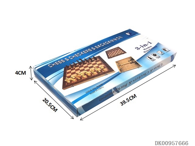 Wooden three in one chess (24cm)