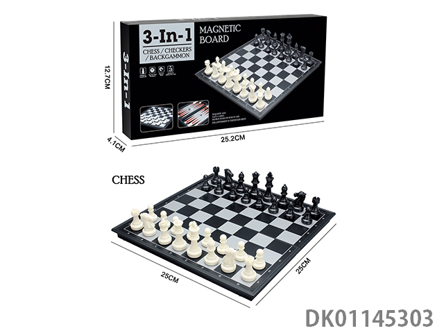 3-In-1 chess/checkers/backgammon magnetic folding chessboard