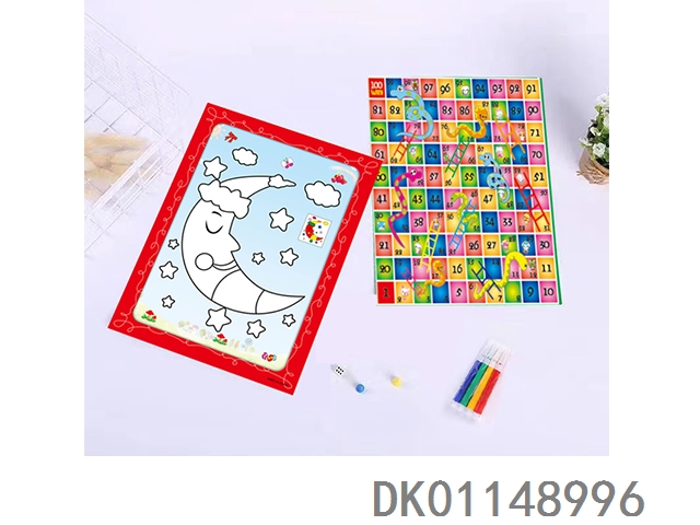 4 Pen snake chess watercolor painting (including dice)