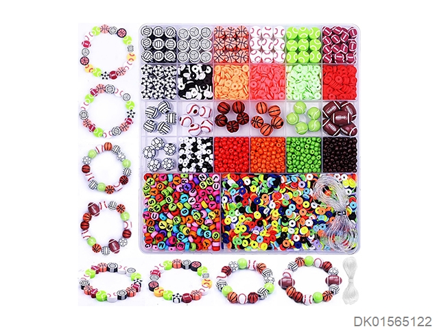 4Mm rice beads, letter beads, soft ceramic beads, sports beads, and thread (26 grids)