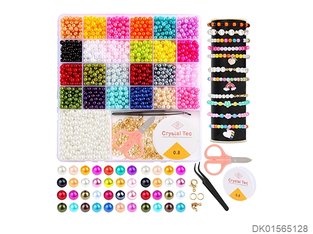 6Mm pearl and tweezers scissors thread and lobster buckle opening ring (26 grids)
