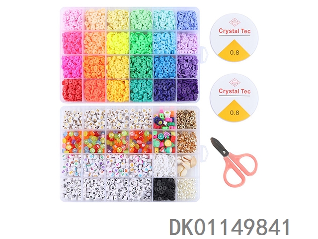 Soft clay and letter beads with scissors solid and transparent lines (24 grid)