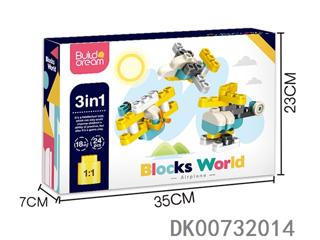 Diy aircraft 3 in 1 large particle building blocks (24pcs)