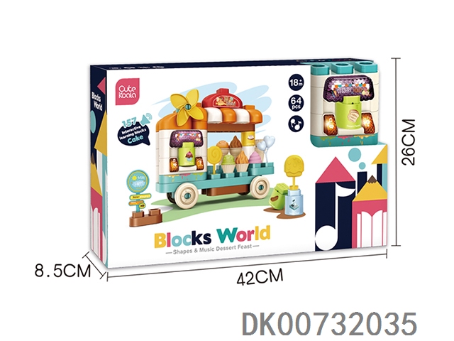 English voice dialogue diy ice cream truck with light music blocks (64pcs)