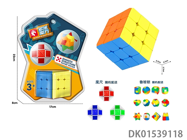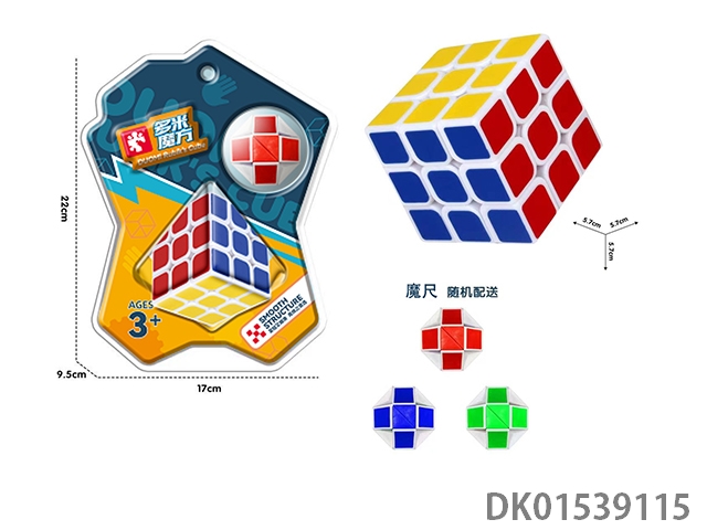 Third order solid color rubik’s cube, ruler, and luban lock