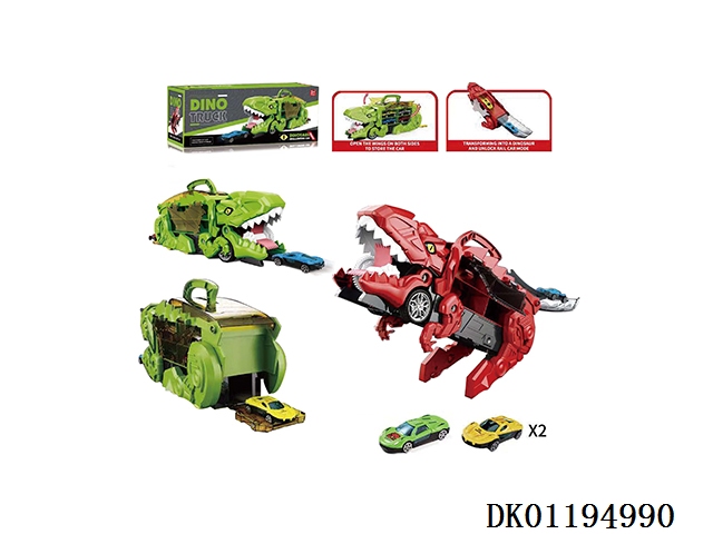 New portable and deformable swallowing alloy car dinosaur track storage car (equipped with 2 sliding alloy cars) green/red 2-color mixed