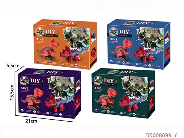 Diy assembled dinosaur (four mixed colors are random)