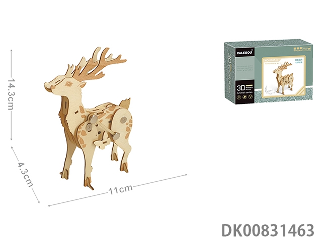 3D puzzle of walking animals on wooden chain (sika deer)