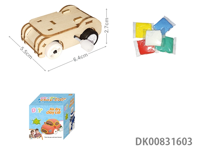 Wooden puzzle clay car