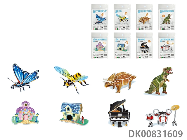 Paper puzzle - butterfly / dinosaur \/ house \/ musical instrument (8 mixed sets)
