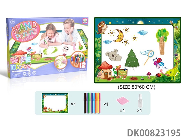 Children’s tapestry 80 * 60cm (paintable and erasable, 12 color pen, wipes and spray bottle)