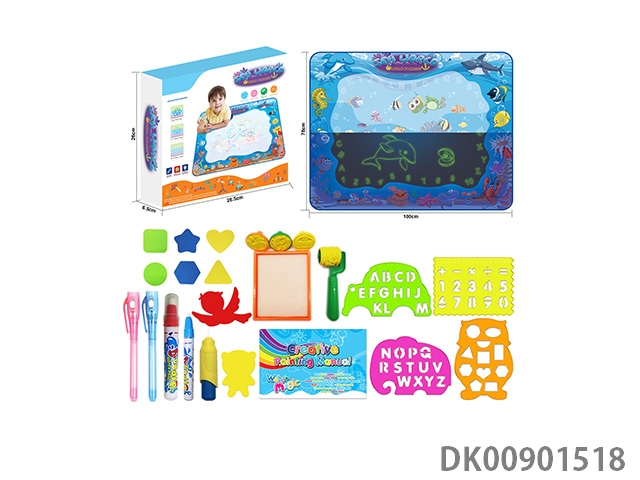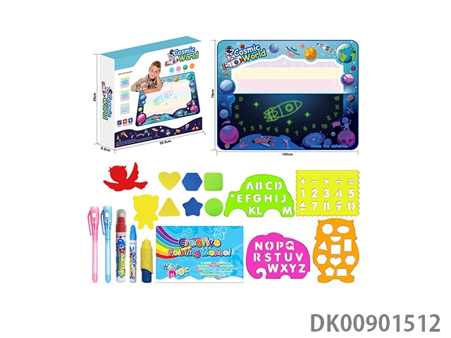 Puzzle music magnetic drawing board with 12 color pro cards with light music (blue pink)