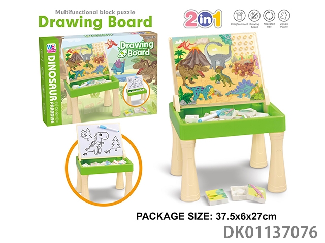Dinosaur building block puzzle drawing board table (2 in 1)