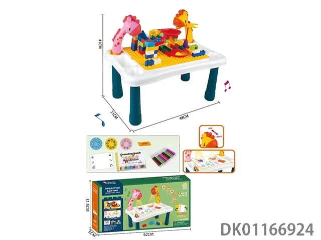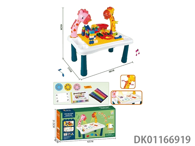 Small double headed giraffe projection table drawing board with light/without music/with building blocks, building blocks