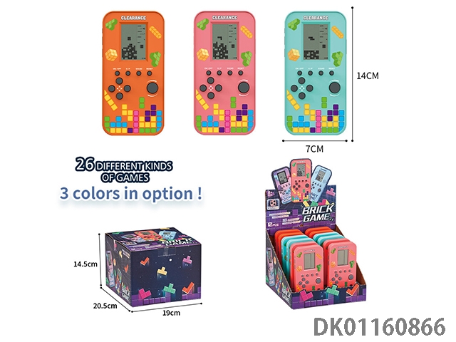 Tetris game console (blue lagoon, orange, pink) 12pcs/box