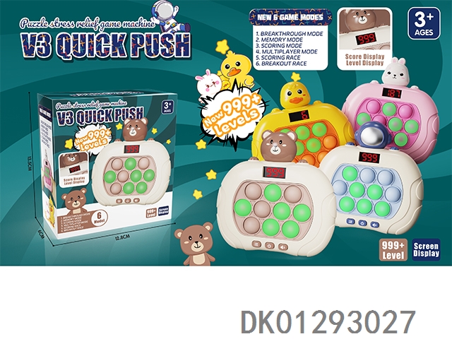 Quick release game console 999 off, 10 hole single light lcd screen with 6 modes: duck/rabbit/bear/space, press and play