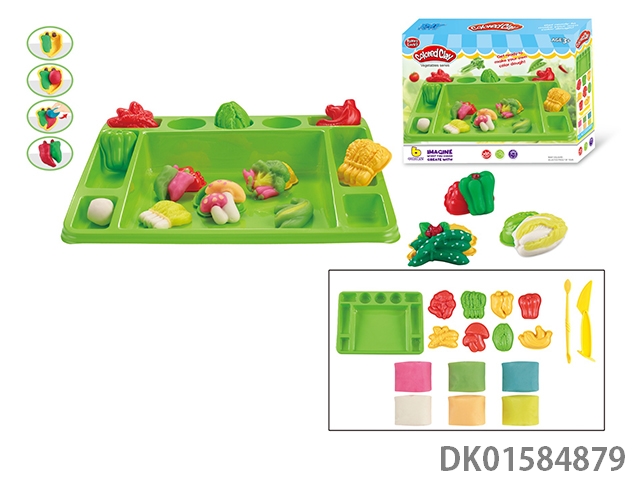 Vegetables with small square plates and colored clay