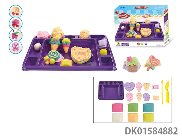 Cake and dessert with small square plate and colored clay