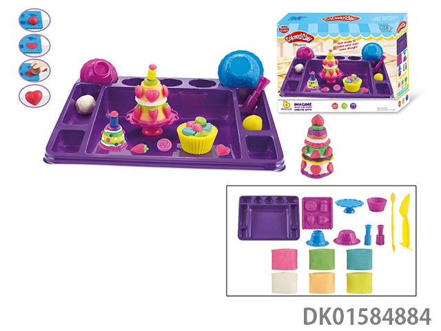 Small cake with small square plate and colored clay