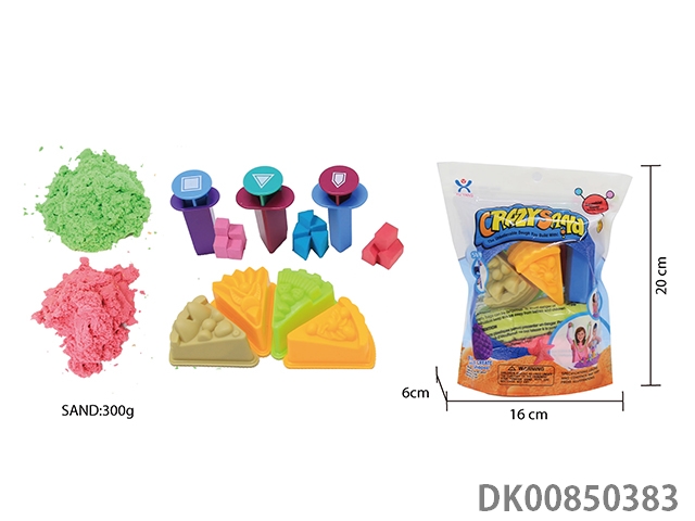 Vertical bag - 300g cotton stretch sand and random geometry jigsaw diy mold 3 pieces and random food 5 pieces (2 color sand)