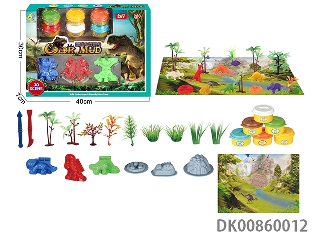 Color box dinosaur scene color mud set (4 bottles, 1 oz)