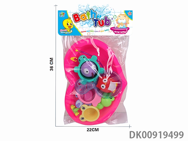 Peach heart bathtub and plastic lined animal and water playing cup