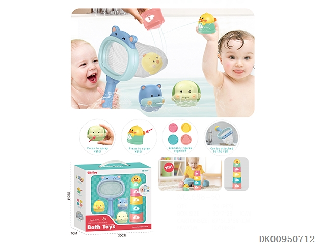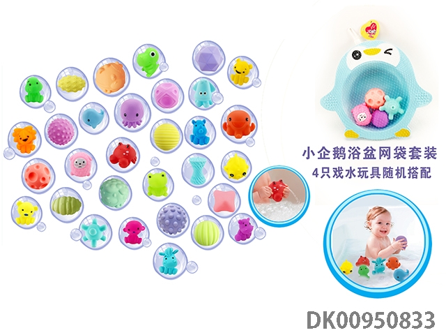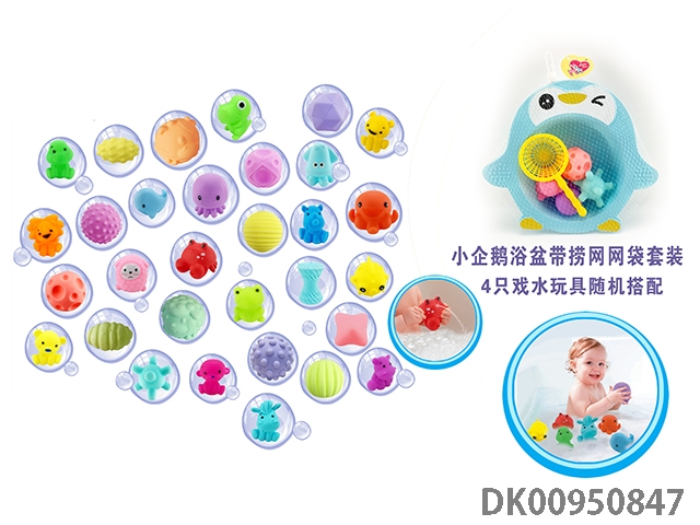 Little penguin bathtub with fishing net water suit (4 water toys are matched randomly)