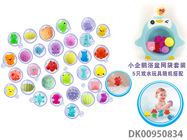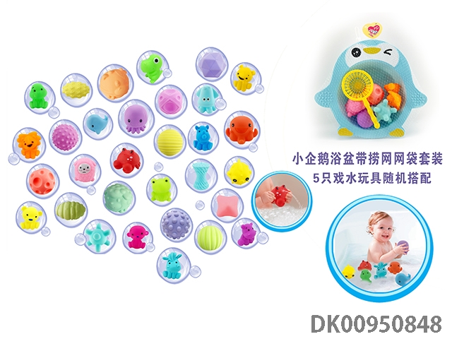 Little penguin bathtub with fishing net water suit (5 water toys are matched randomly)