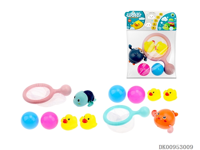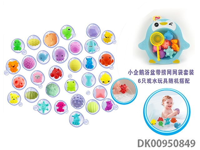 Little penguin bathtub with fishing net water suit (6 water toys are matched randomly)
