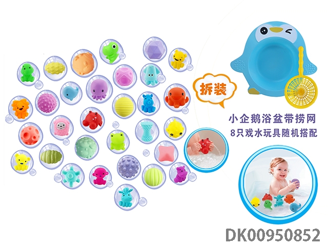 Little penguin bathtub with fishing net (random matching of 8 water toys)