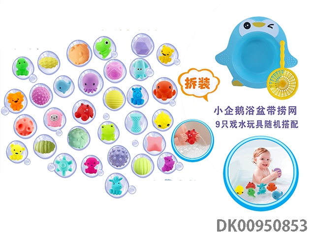 Little penguin bathtub with fishing net (random matching of 9 water toys)