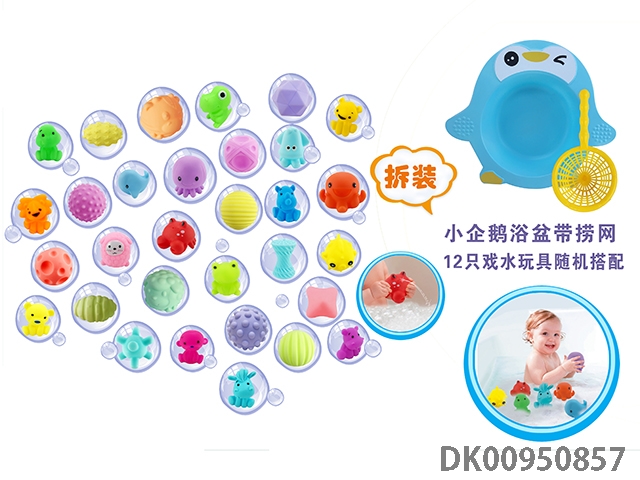 Little penguin bathtub with fishing net (random matching of 12 water toys)