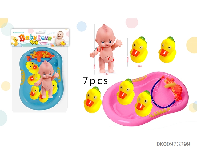 Bathroom vinyl doll with duck bathtub toy
