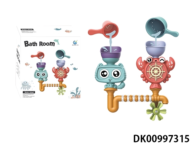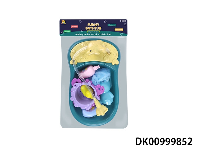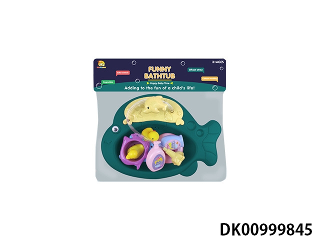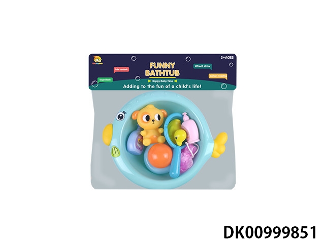 Spray fish basin with bath accessories and plastic lined animals